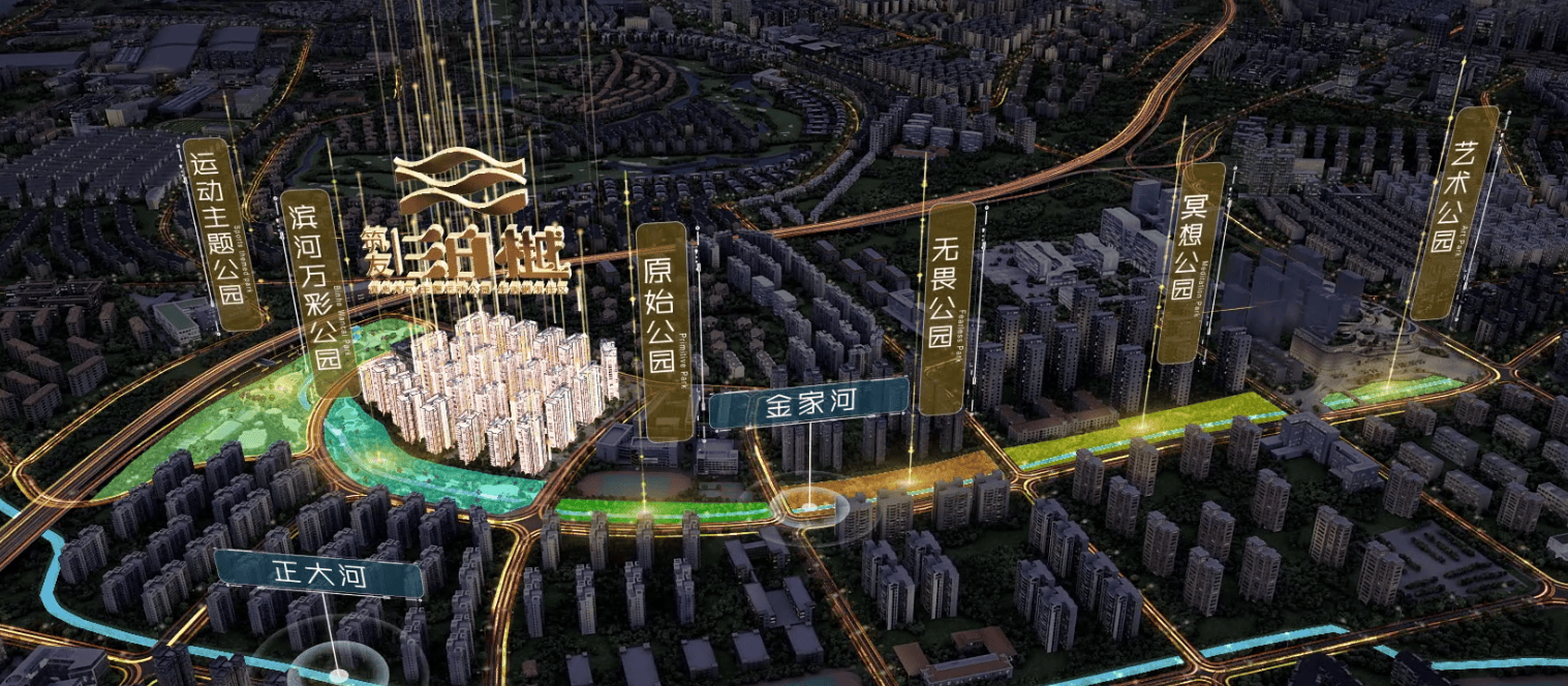 15.5万㎡六大主题公园环伺:筑友地产依据项目金家河、正大河天然双河资源,沿河规划打造双河四岸约15.5万㎡绿色生态公园,形成约3km的滨河休闲长廊,目前已呈现冥想公园、无畏公园、原始公园,在建双河湾公园(规划休闲区、运动区),A1地块规划艺术公园,3KM滨河漫步长廊串联,真正“推窗见景,出门入园”。
