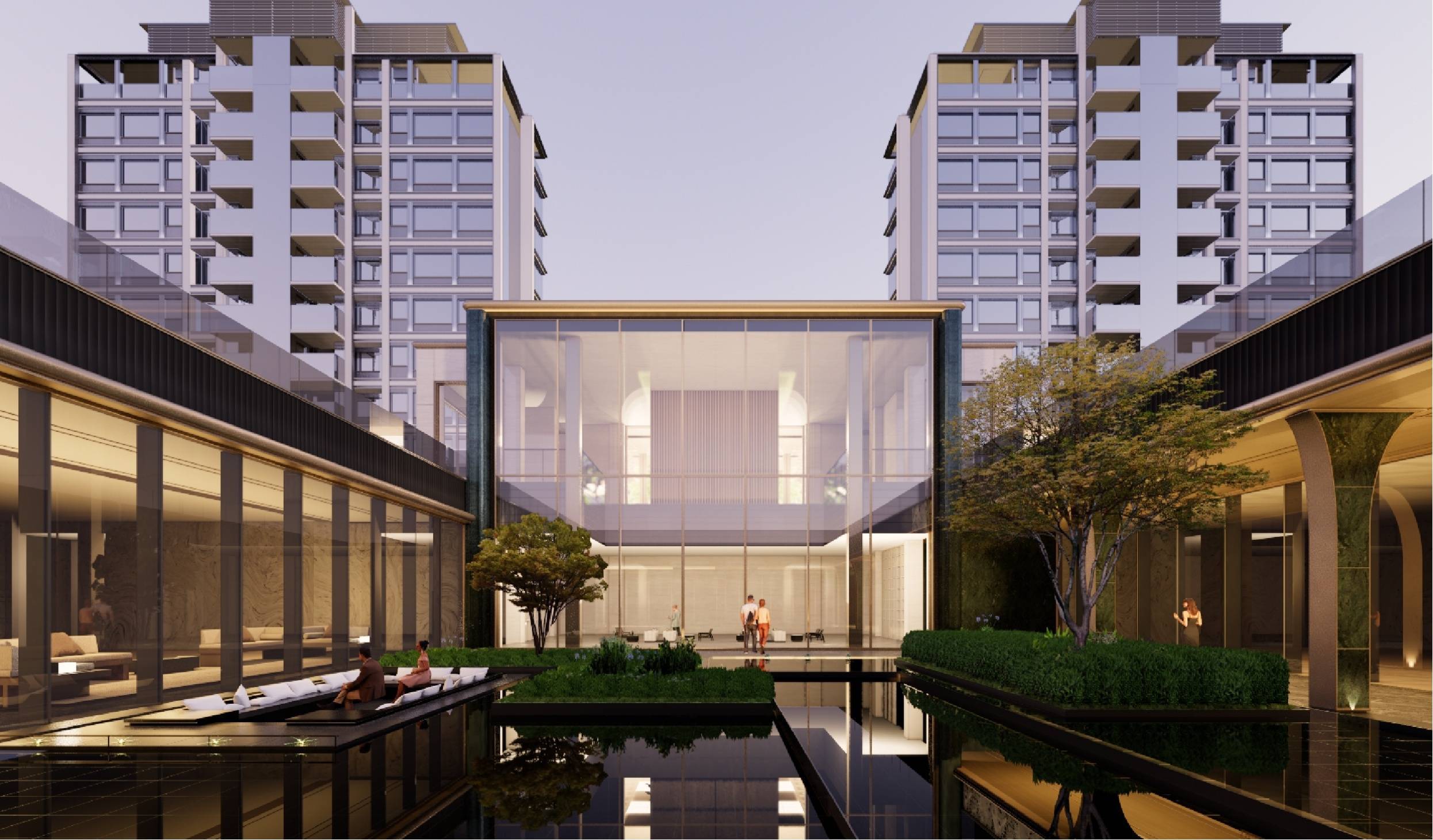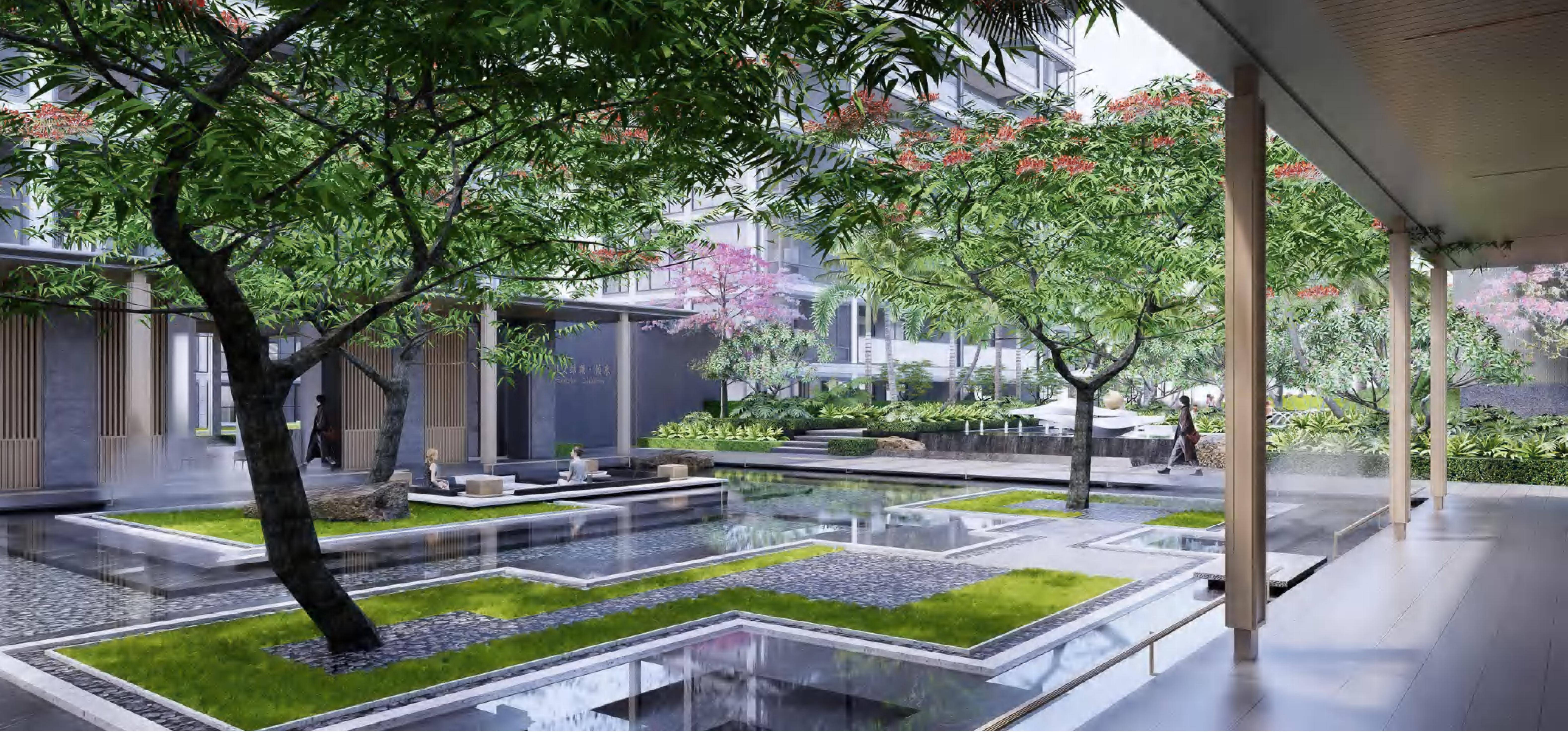 在整体规划上,结合在地人文,从陵水河的灵动、大溪岭的风光中汲取灵感,以“精细、安定、恒久”为设计原则,站在人文主义的原点上,延展出更宽广的美学场域。